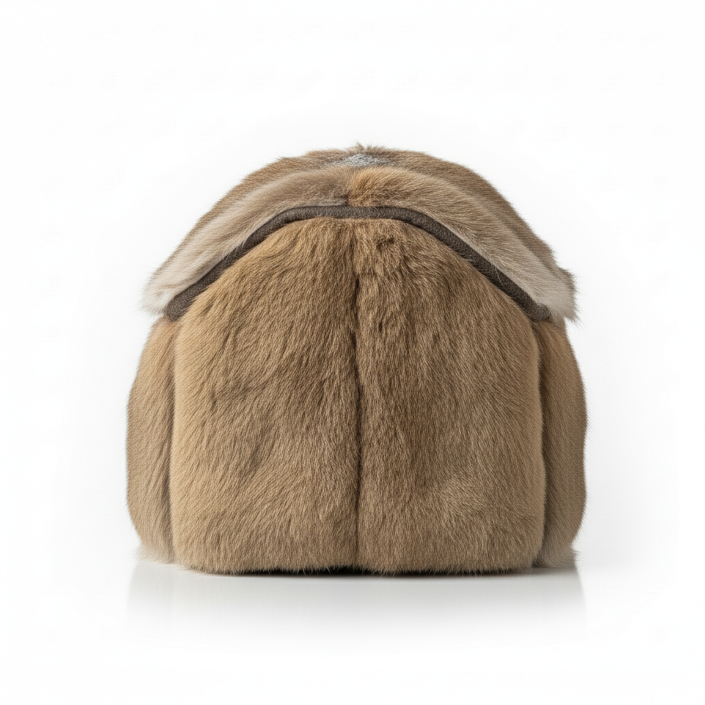 Constructed from 100% genuine, ethically sourced rabbit hide with natural fur, supported by a semi-rigid internal frame to help maintain its shape over time.