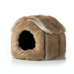 Home Small Pet Hideouts Rustic Rabbit Hide House – Natural Fur Small Animal Shelter & Cozy Pet Cave