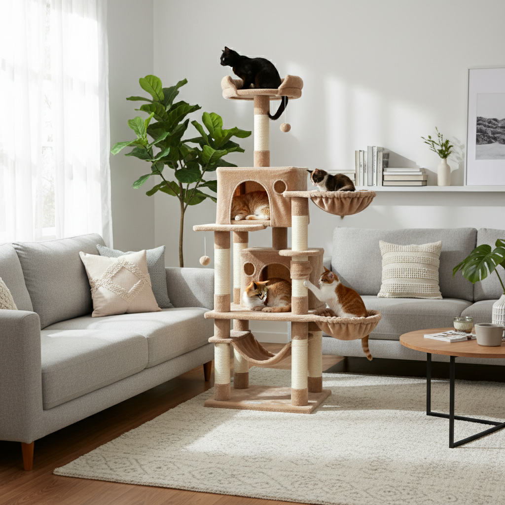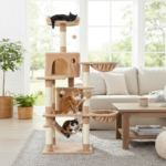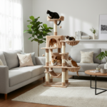 Give your feline friend the ultimate vertical playground with the Trinyza Multi-Level Cat Condo. This all-in-one activity center is designed to satisfy your cat’s natural instincts to climb, scratch, and lounge in comfort. Its stylish, home-friendly design seamlessly blends with your decor while providing endless entertainment for your beloved pet.